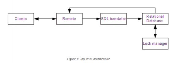 - remote connection system (REMOTE): This subsystem allows remote clients to connect to the database over different network protocols. It is composed of two parts: a client-side component and a server-side component.