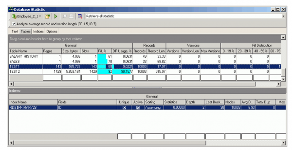 If you refer again to the Database Statistics you will see how large the memory difference now is: