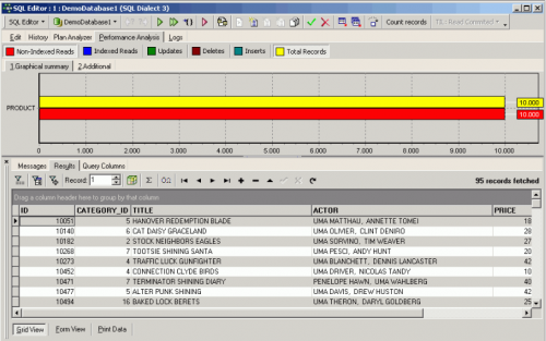 you will see that 60 indexed read operations were performed, and the Plan Analysis shows that the IX_PROD_ACTOR index was used: